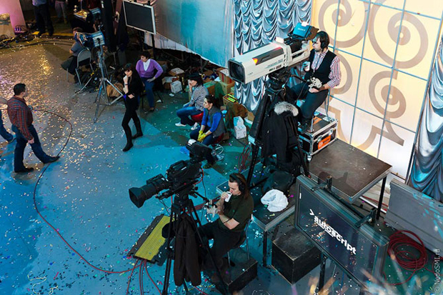 Два года назад я уже был на съемках «Огонька». С того раза мало что изменилось. Разве что не просили хлопать беззвучно и не кидали серпантин – к этому дню съемок его уже размотали аж девять километров.