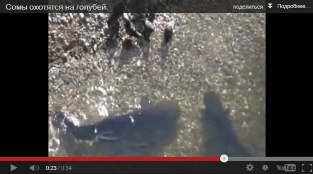 Как сомы охотятся на голубей Я бы никогда в жизни не подумал, что такое вообще реально, если бы не посмотрел этот видеоролик! Давайте посмотрим, как сомы на мелководье ловят себе на обед необычную добычу… голубей. Знаешь того, кому необходимо увидеть это? Сообщи: