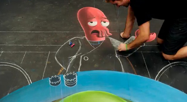 Как создаются 3D-рисунок на асфальте? На этом ролике можно понаблюдать, как американский уличный художник Крис Карлсон создаёт впечатляющий объёмный рисунок с помощью разноцветных мелков. Знаешь того, кому необходимо увидеть это? Сообщи: