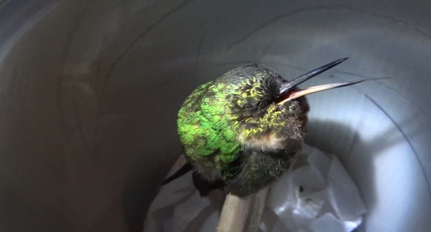 А вы слышали, как храпит самая маленькая птичка в мире? Добрые орнитологи из Перу предоставляют такую возможность. Они подкрались к колибри во время безмятежного сна, и записали необычный храп птички на микрофон. Сразу предупреждаю — лучше сделать звук потише. Микрофон очень чувствительный.