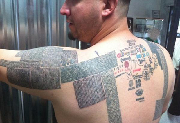 Pat Vaillancourt — обладатель рекорда по количеству татуировок с URL-адресами сайтов на спине и руках. Но он не планирует останавливается. В его планах 100000 адресов.