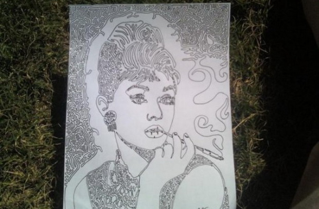 На своих затейливых картинах Renbo изображает портреты знаменитостей – и использует для этого всего одну линию, которая нигде не пересекает уже нарисованный узор. При помощи изящных изгибов художнику удается подчеркнуть наиболее характерные черты изображаемого лица. Renbo прикладывает массу усилий, чтобы не отрывать руку от холста, даже если чувствует сильную усталость.
