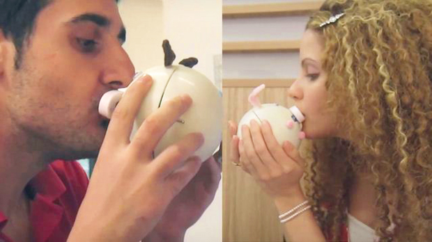 Устройство имеет одну странную особенность: каждый раз, когда к нему прикасаются губами, оно издает звуки, схожие со свиным хрюканием. Немного странный способ для создания романтической обстановки.