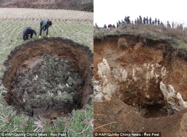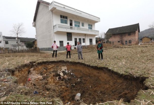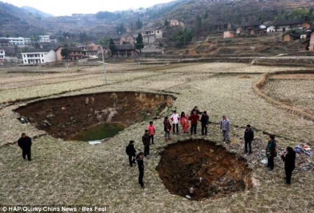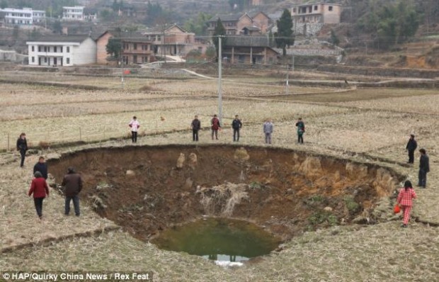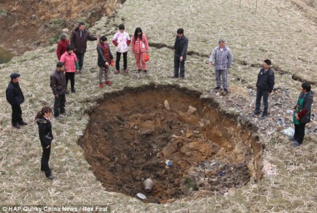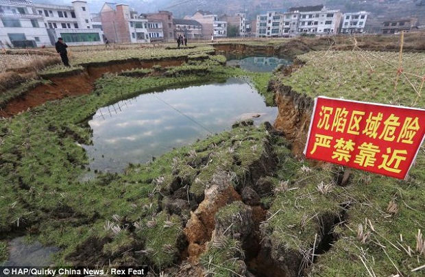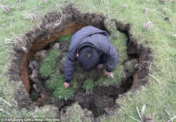 Земля в китайской деревне буквально исчезает на глазах у жителей, образуя большие провалы и поглощая огромные пространства. В течение последних пяти месяцев жители деревни Ляньюань в южной провинции Хунань встревожены тем, что около 20 провалов внезапно образовались в земле.