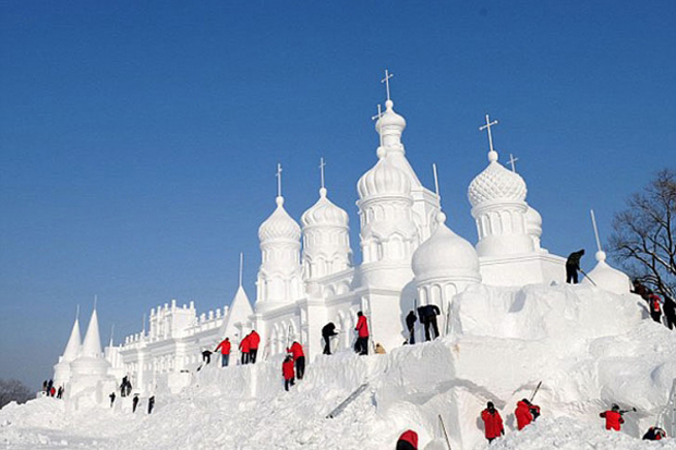 Ежегодный фестиваль снежных скульптур, недавно стартовавший в китайской провинции Гирин, радует глаз туристов белоснежными конструкциями, над которыми славно потрудились мастера, придав каждой фигуре геометрически идеальные очертания.