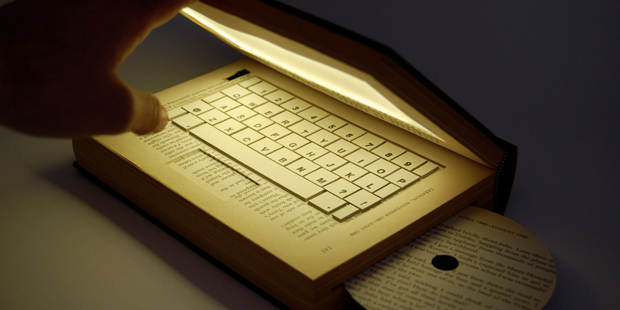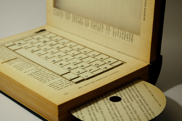 Как утверждает Kyle Bean Книга такая же личность — у них индивидуальный вид и запах, который Интернет не может предложить. Kyle сделала ноутбук из книги купленной в книжном магазине за 1,5 фунта, также как и несколько компонентов, чтобы подсветить экран.