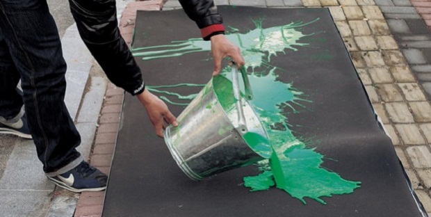Когда человек переходит дорогу в этом месте, на подошве его обуви остаётся небольшое количество зелёной краски, которая образует сочный след, отдалённо напоминающий листик дерева.