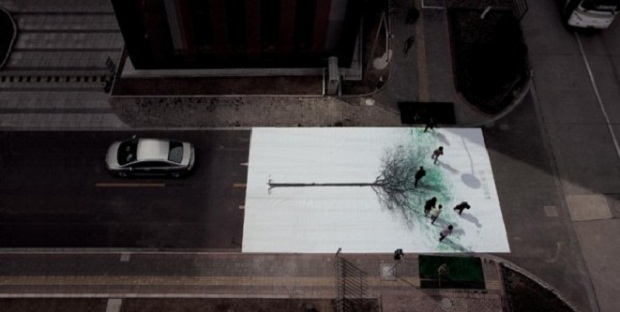 Огромные белые полотна с нарисованными на них голыми и тонкими стволами деревьев были размещены на 132 пешеходных переходах в 15 китайских городах.