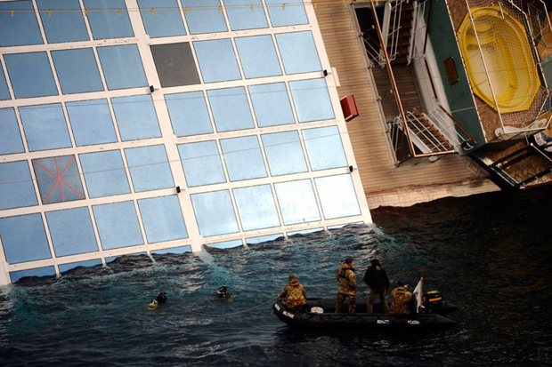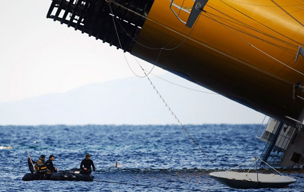 19. Водолазы осматривают полузатопленный «Costa Concordia». (Filippo Monteforte/AFP/Getty Images)