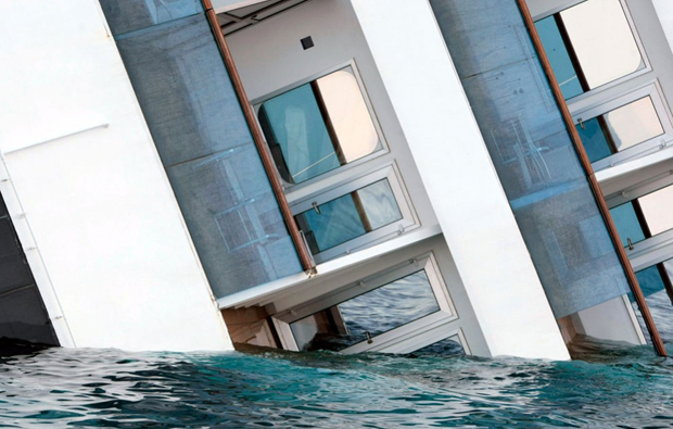 17. Частично погруженные в воду каюты лайнера «Costa Concordia». (AP Photo/Gregorio Borgia)