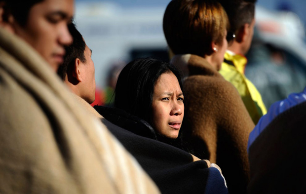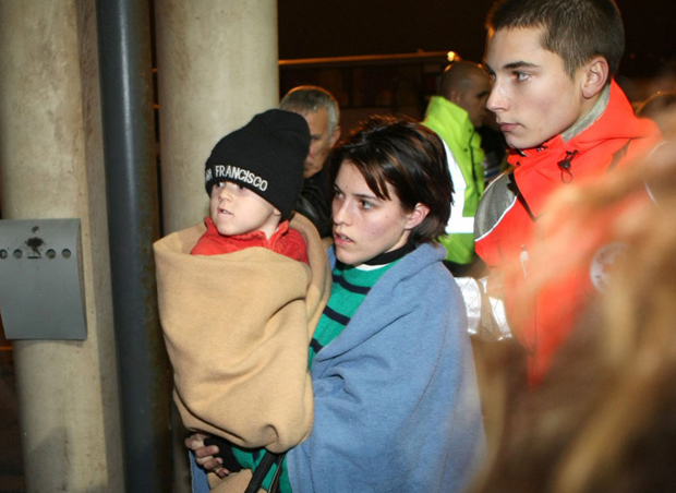 4. Пассажирка «Costa Concordia» прибыла с другими в порт Санто-Стефано после крушения корабля. Кто-то из пассажиров спрыгнул в ледяные воды, когда началась паника. Корабль плыл по Средиземному морю в Савону с запланированными остановками в Чивитавеккье, Палермо, Каглиари, Пальме, Барселоне и Марселе. (Filippo Monteforte/AFP/Getty Images)