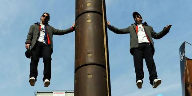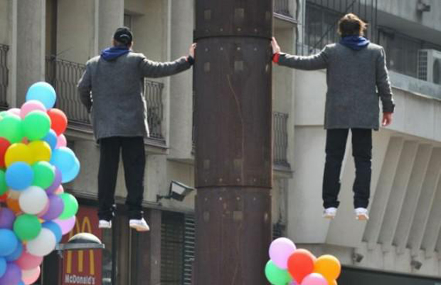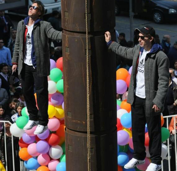 Эти ребята решили отметить 200-летие независимости Чилийской Республики, простояв в воздухе в течении 200 минут. Волшебные близнецы ошеломили тысячи прохожих, когда парили над улицами города больше 8 часов. Их единственной видимой поддержкой был столб, за который они держались одной рукой.