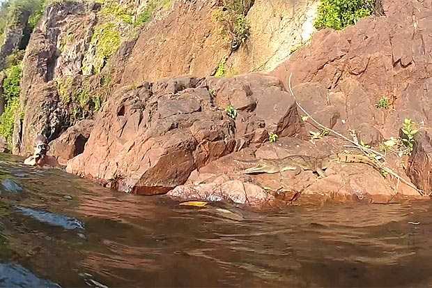 Шведские туристы, приехавшие в Австралию, отправились купаться в водоеме, где заметили крокодила, выползшего на камень. Мужчины решили снять на видеокамеру рептилию, не представляя, чем закончится их затея.