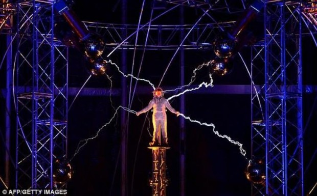 Американский иллюзионист Дэвид Блэйн отважился простоять трое суток подряд под напряжением в миллион вольт. 7 гигантских трансформаторов инженера Теслы направлены на смельчака искусственные молнии.