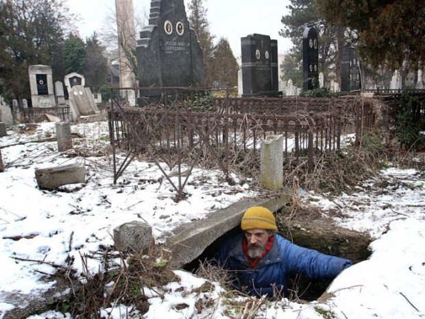 Бездомный мужчина рассказал, как он начал спать с мертвыми, когда переехал на кладбище пятнадцать лет назад. По словам мужчины, в могиле намного комфортне, чем на улице. 43-летний Братислав Стоянович делит свое жилище в могильнике с прахом семьи, которая умерла более 100 лет назад в городе Ниш, Сербия.