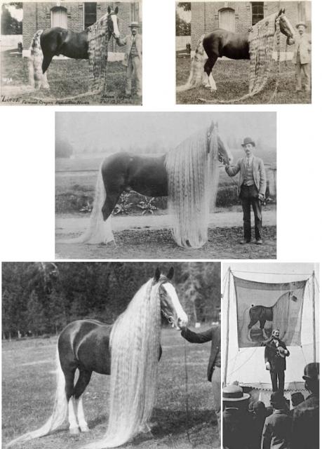 В рекламном проспекте для шоу было написано следующее: «В течении 4 лет его грива и хвост увеличивались приблизительно на 3 дюйма в месяц, а теперь достигли своего апогея. Его цвет – глянцево-каштаново-золотой. Задние ноги и морда – белые, грива и хвост – нежного льняного цвета. Его «волосы» продолжают расти и сейчас, но медленнее. Линус гордо держит свою голову и гордится восхищенными взглядами посетителей. Его грива составляет 14 футов в длину, а хвост – 12.»