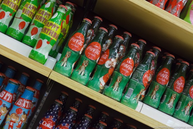 Ну и, конечно же, здесь вы всегда найдете тот самый легендарный напиток. Только в этом магазине можно купить его в таких оригинальных бутылках: