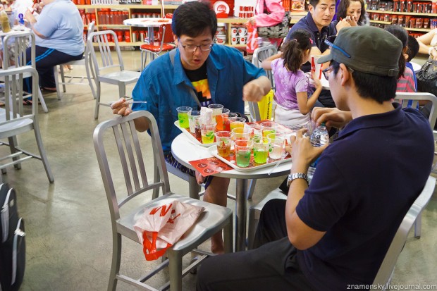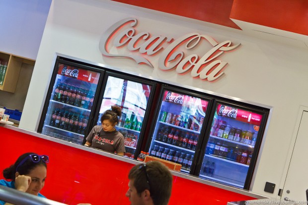 На втором этаже магазина расположен кафетерий. Тут можно попробовать любой напиток, который Coca-Cola продает в разных странах мира. Некоторые марки оказались мне совсем незнакомыми:
