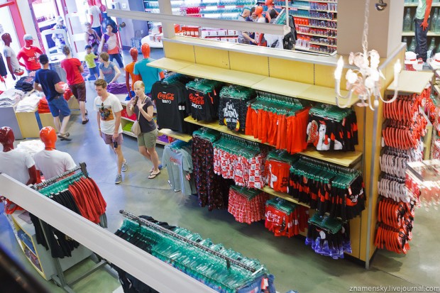 Конечно же, в первую очередь вам предложат сувенирную одежду. Чего тут только нет! Футболки, кепки, бейсболки, носки, купальники, сумки, толстовки и куртки и много чего еще: