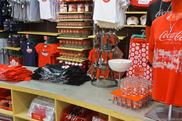 Чтобы понимать, что может представлять из себя «сувенирный рай», предлагаю вам сегодня заглянуть в фирменный магазин Coca-Cola на южном Стрипе. Казалось бы — можно ли из одной марки раздуть целый магазин сувениров и подарков? Давайте посмотрим.