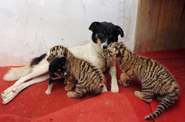 В таких случаях распространенной практикой в китайских зоопарках является использование собак в качестве суррогатных матерей для тигрят, львят, медвежат и других новорожденных детенышей. У собаки по кличке Балу уже большой опыт в этом полезном деле: за пять лет она выкормила уже 12 тигрят оставленных родителями в разное время. Балу стала настоящей матерью-героиней.
