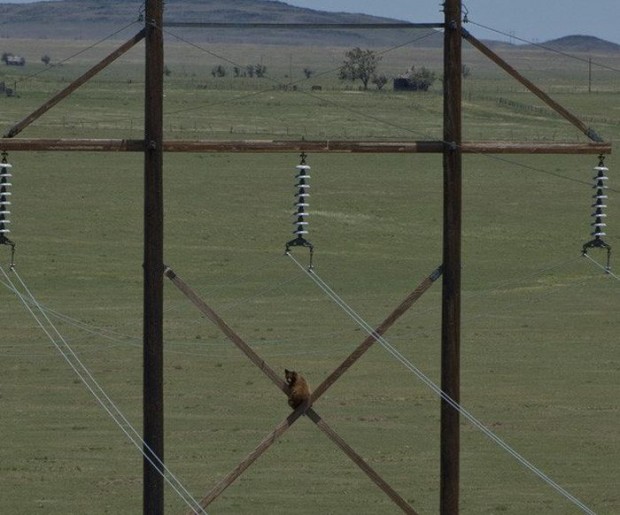 Честно говоря, эти снимки меня просто повергли в шок. Нет, это не какой-то сумасшедший экстремал или руфер, дежурным патруля был замечен бурый медведь на верхушке ЛЭП.