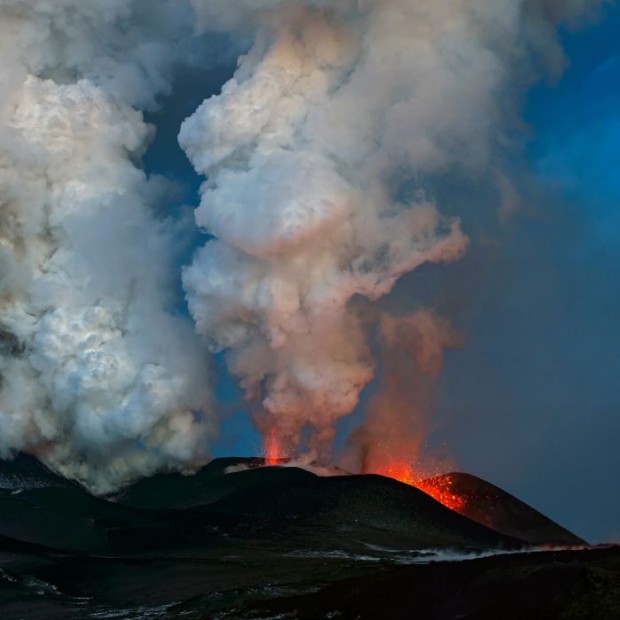 Сегодня я хочу показать вам, как на Толбачинский долу, на Камчатке, сейчас проходит извержение мощного вулкана под названием Плоский Толбачик.