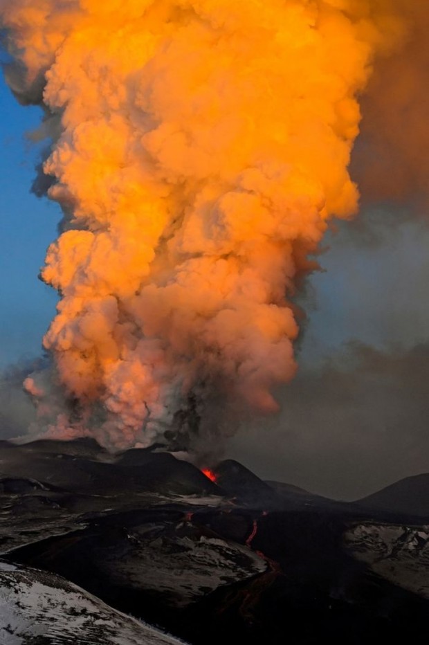 На фотоотчете с этого знаменательного события отчетливо видно, как из жерла вулкана вытекает лава, которая сносит абсолютно все на своем пути и не оставляет ничего живого.