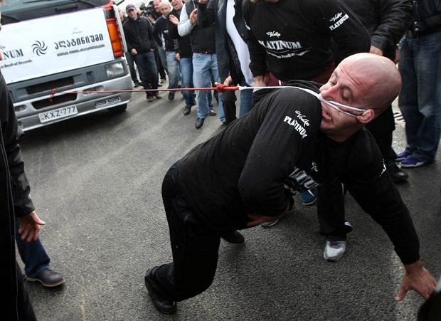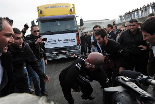 Грузинскому спортсмену удалось протащить фуру на 21,5 метра, обеспечив себе место в Книге рекордов Гиннеса.