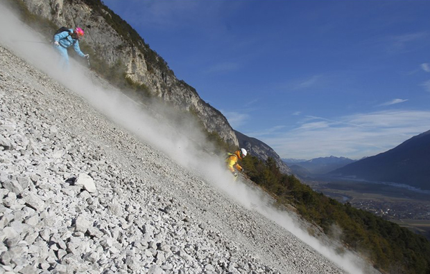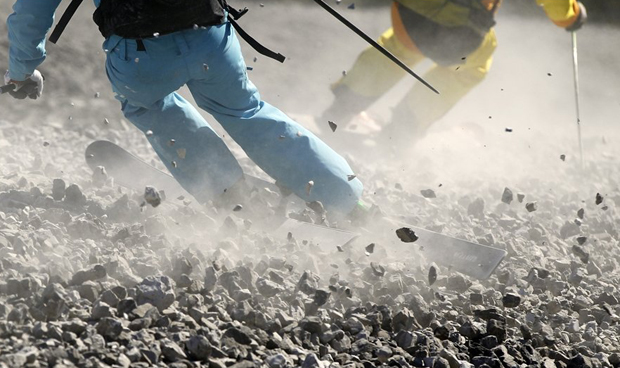 Но это не помеха для этих отчаянных ребят. В отсутствие снега они решили прокатиться на лыжах по камням не жалея ни себя, ни снаряжения.