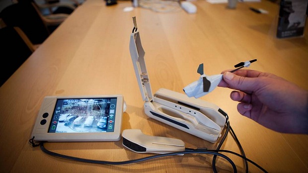 В комплект поставки, кроме собственно вертолёта, входит пульт управления размером с небольшой планшет, зарядная станция и защитный футляр. Вес полного комплекта — около 1 кг. Первые устройства уже используются в Афганистане.