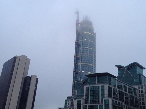 Повреждённый строительный кран у небоскрёба. (Carl Court/AFP/Getty Images)