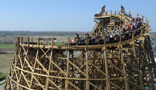 Новые американские горки сделаны по большей части из сосновой древесины. Для сооружения конструкции было использовано свыше 21 000 досок, 2 млн. гвоздей и 100 000 болтовых соединений. Над ней 9 месяцев работала американская фирма.