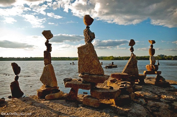 Детское хобби складывать морские камешки в кучки и стопочки впоследствии превратилось в масштабный арт-проект Gravity glue, которому вот уже несколько лет подряд взрослый Майкл Грэб посвящает все свое свободное время. Его специализация — это лэнд-арт, только камни и ничего кроме них.