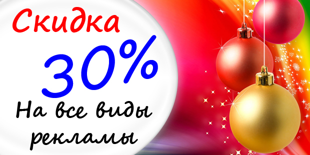 Ваша реклама на MirFactov.com – хорошая возможность показать и рассказать о себе нашей аудитории. Только с 26.12.11 по 6.01.12 на сайте действует Новогодняя скидка 30% на все виды рекламы. Спешите, количество рекламных мест ограничено.