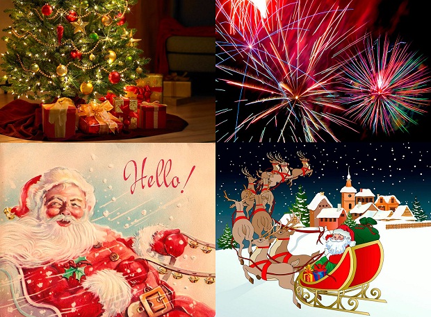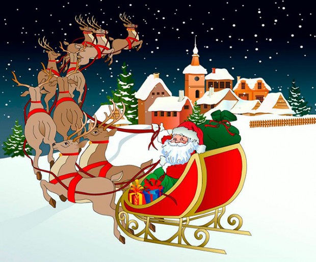 Оленей Санта-Клауса зовут: Дэшер, Дэнсер, Прэнсер, Виксен, Комет, Кюпид, Доннер, Блитцен. В Северной Америке вожаком является красноносый Рудольф.