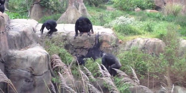 Посетители зоопарка Сент-Луиса, США стали свидетелями неприятной сцены, которую сняли на видео. В вольер к шимпанзе непонятным образом проник енот, и зрители решили, что животные решили поиграть. Но затем умиляющиеся возгласы сменяются негодующими: становится ясно, что обезьянам непрошеный гость не по нраву. Одна из них схватила полосатого зверька за хвост и мощным движением скинула с высоты, а когда енот попытался скрыться в сливной трубе, злобные шимпанзе начинают таскать его за хвост. Что любопытно, никто из зрителей не позвал на помощь сотрудников зоопарка.