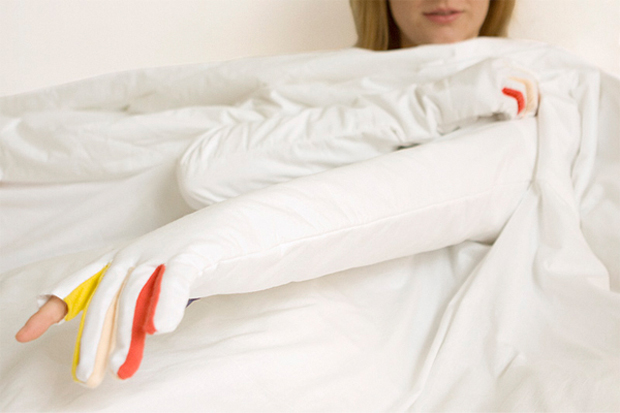 Так вот перейдем к «Одеяло с рукавами» Андре решила утеплить одеяло парочкой рукавов. Длинные рукава заканчиваются перчатками, которые оставляют открытым лишь один указательный палец — для того, чтобы удобно было перелистывать страницы.