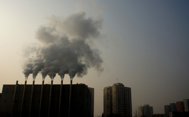 Дым валит из труб в районе Чаоян Ванжин в Пекине, 14 января 2013 года. (AFP/Getty Images)