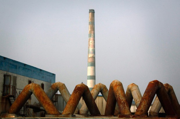 Дымовая труба государственного завода по выплавке свинца в городе Tianying в провинции Аньхой, 19 ноября 2012 года. За десятилетия работы свинцовых заводов большая часть территории города стала непригодна для жительства. (David Gray/Reuters)