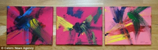 Теперь ослица берёт в рот кисточку и водит по холсту до тех пор, пока ей не покажется, что работа завершёна, и тогда она ставит точку.Источник