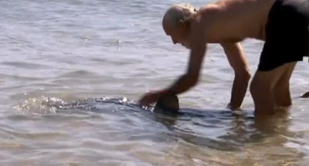 Турист из Великобритании оттащил двухметровую акулу от маленьких детей, играющих на мелководье у берегов Австралии.