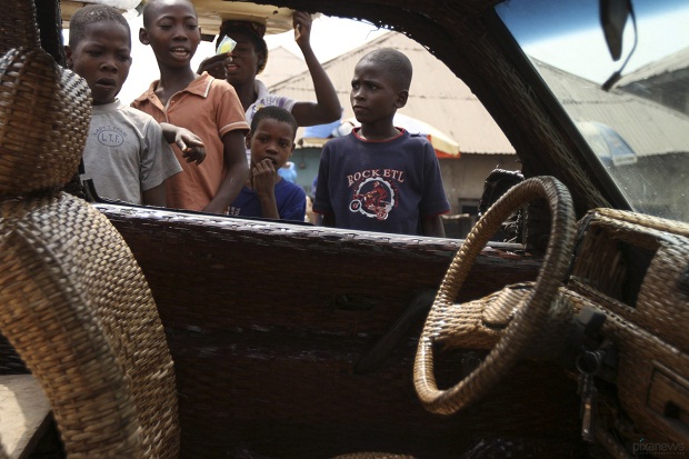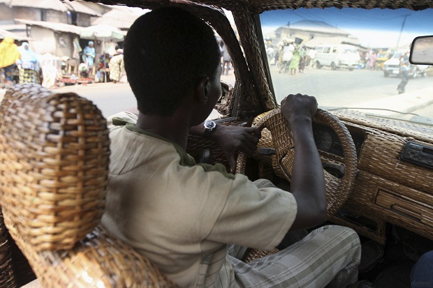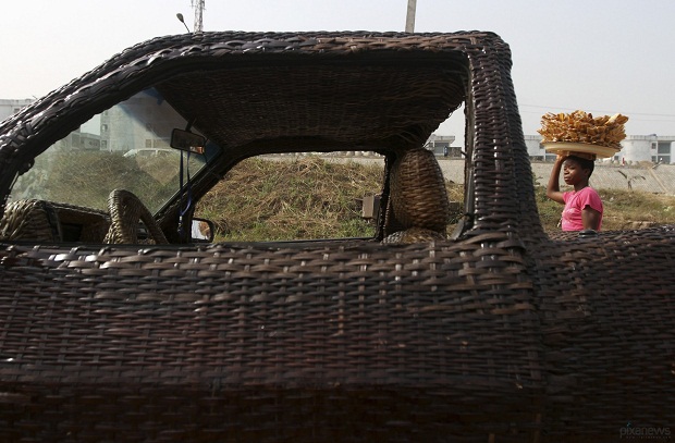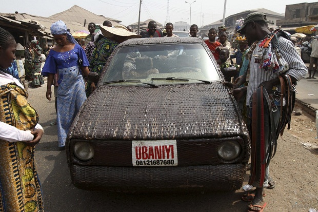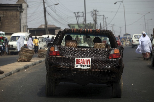 Нигерийский мастер плетения из Нигерии Оджо Обанийи (Ojo Obaniyi) сплел обивку для салона и корпуса своего пикапа. Таким образом, Оджо решил привлечь внимание к своей мастерской, где мастер плетет разные поделки из волокон пальмы рафия. Реклама получилась на славу.