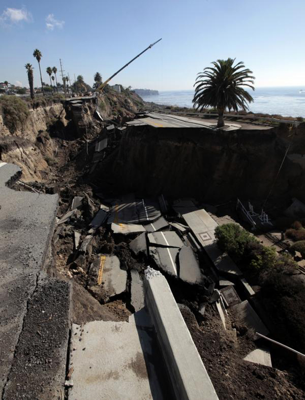Участок дороги в пригороде Лос-Анджелеса, находящийся в аварийном состоянии с весны этого года, все же рухнул в океан. В последние недели красивейшее шоссе в пригороде Сан-Педро сползало в Тихий океан со скоростью порядка 1,5 сантиметров в сутки, а последней каплей стали сильные проливные дожди, обрушивающиеся на регион в воскресенье и понедельник. В результате катастрофы люди не пострадали, однако местные власти утверждают, что восстановлению этот участок шоссе скорее всего не подлежит и придется строить новую дорогу.