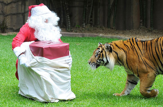 Новогодний подарок для суматранского тигра, зоопарк в Австралии.