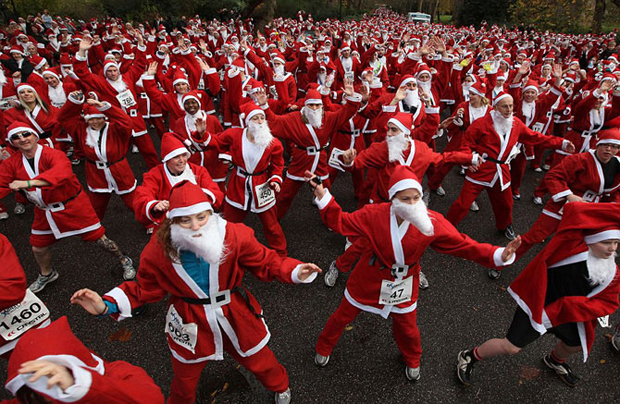Забег в костюмах Санта Клаусов в Германии.
