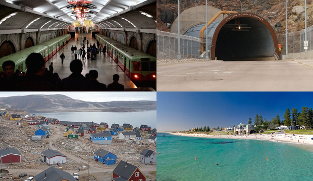 Этот головокружительный вид на фото внизу – «великая снежная стена» высотой 20 метров. Коридор «Юкино-Отани» в Японии «прорубают» в толще снега, а чтобы его ось совпала с осью дороги, по обочине проезжей части установлены специальные многометровые вышки с вмонтированными в них радиопередатчиками. Раскапывать шоссе начинают в апреле—мае. Это происходит каждый год.
