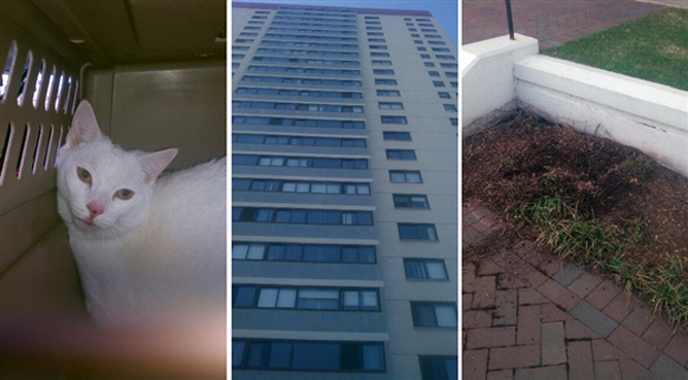В Бостоне, штат Массачусетс, кошка выпала из окна квартиры на 19-м этаже и осталась жива, сообщает WBZ-TV.. Более того, в результате падения животное не получило ни переломов, ни серьезных травм внутренних органов. Ветеринары, осмотревшие белую кошку по кличке Сахарная, обнаружили лишь небольшой ушиб легких.