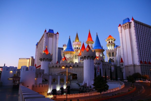 Напротив MGM Grand и New York — New York стоит странный сказочный комплекс отеля Excalubur. Изначально построенный для семейного отдыха (сказочность подразумевалась скорее для детей), он достаточно быстро сменил ориентиры просто на средневековые интерьеры и развлечения. Как выяснилось, в Вегас с детьми едут неохотно — те не дают родителям отрываться