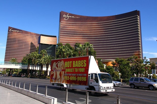 В штате Невада запрещена проституция, но девушки приезжают по вызову из соседних штатов, где она разрешена (около часа езды). Город Разврата не мог обойтись без таких шалостей
